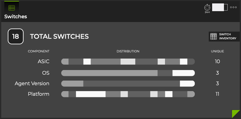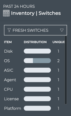 | Unique | Number of unique items of each component type. For example, for OS, you might have Cumulus Linux 3.7.15, 4.3 and SONiC 202012, giving you a unique count of 3. |