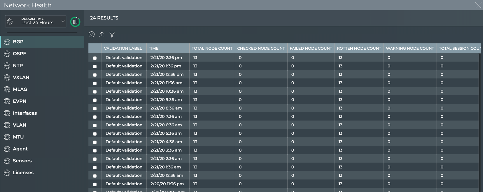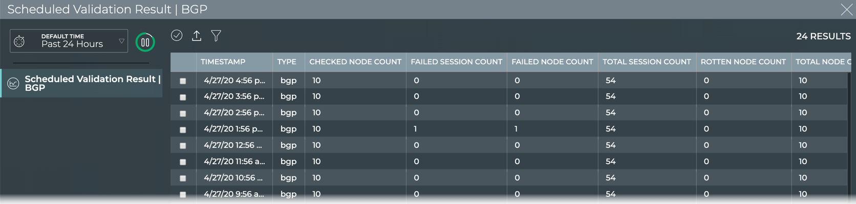 | Scheduled Validation Result | <network protocol or service> | Displays all unscheduled validation results. By default, the results list is sorted by timestamp. This tab provides the following additional data about each result: