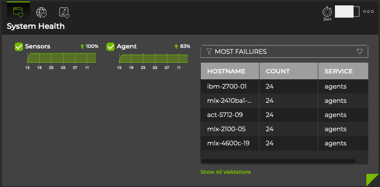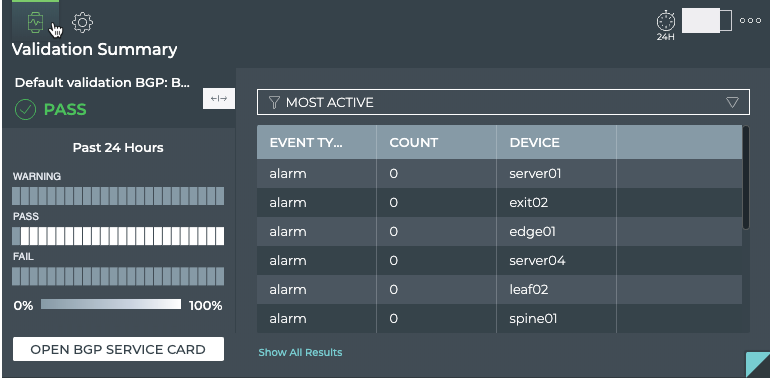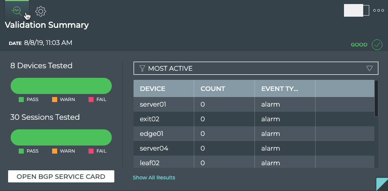 | Show All Results | Click to open the full screen card with all scheduled validation results sorted by timestamp. |