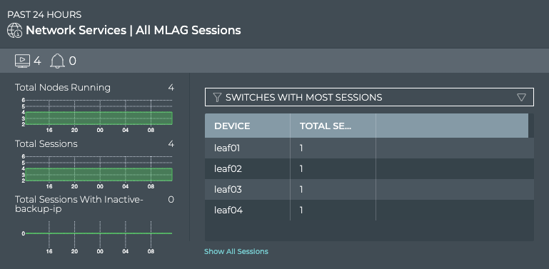 | All Switches and All Hosts tabs | Displays all monitored switches and hosts in your network. By default, the device list is sorted by hostname. These tabs provide the following additional data about each device: