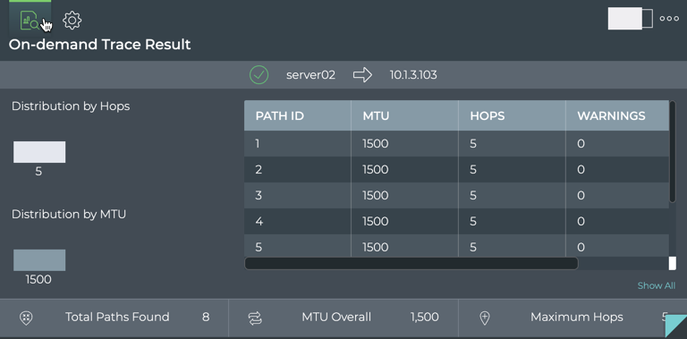 | Results | Summary of trace results: a successful result implies all paths were successful without any warnings or failures; a failure result implies there was at least one path with warnings or errors.