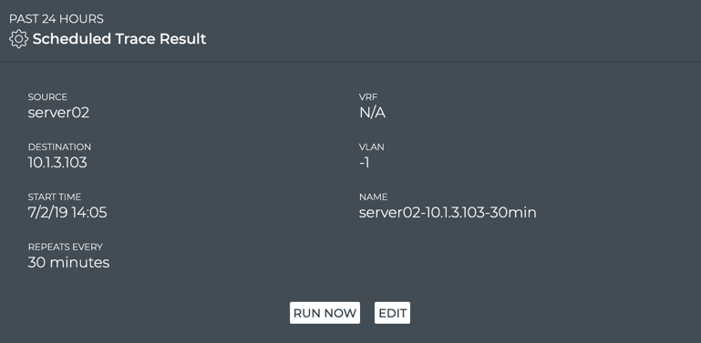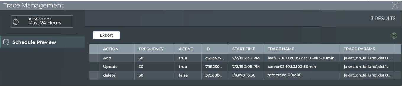| Scheduled Trace Results tab | Displays the basic information about the trace, including: