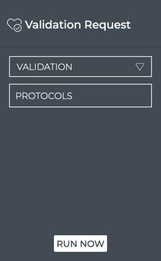 This card is used to create a new on-demand or scheduled validation request or run a scheduled validation on demand.
