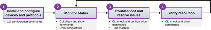 Monitoring of systems inevitably leads to the need to troubleshoot and resolve the issues found. In fact network management follows a common pattern as shown in this diagram.