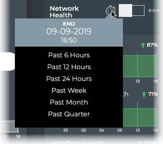 All cards have a default time period for the data shown on the card, typically the last 24 hours. You can change the time period to view the data during a different time range to aid analysis of previous or existing issues.