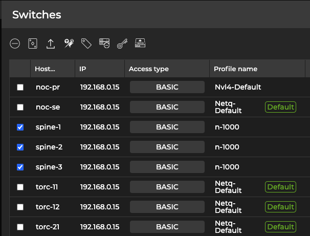 netq lcm show credentialsto display a list of access profiles. Note the profile ID that you’d like to assign to a switch. -