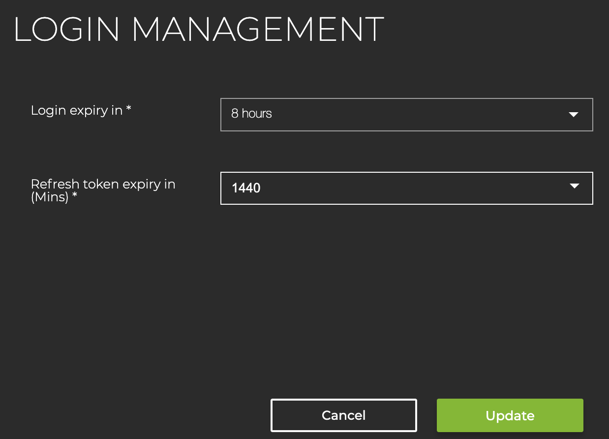 Select how long an account can be logged in before requiring a user to log in again: