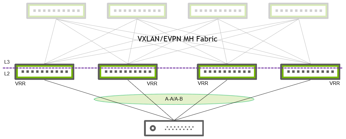 When working with an EVPN network, you can leverage EVPN Multihoming (EVPN MH) to eliminate the need for MLAG in your environment. By removing MLAG from the ToRs, you can use a larger layer 2 redundancy group (more than two ToRs). EVPN multihoming uses a standard BGP-EVPN control plane and allows multi-vendor interoperability so that you can deploy multi-vendor ToRs.