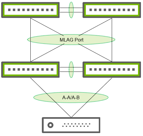 To achieve redundant top-of-rack deployment using MLAG, you must configure storage array NICs with active-active bonding. The examples below use the MLAG protocol set even for non-active-active bonds towards the ToR switches: