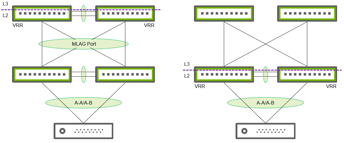 You can use Cumulus Linux set to configure a redundant active-active layer 2 and layer 3 environment with Multi-Chassis Link Aggregation (MLAG) and Virtual Router Redundancy (VRR).