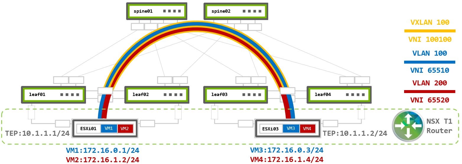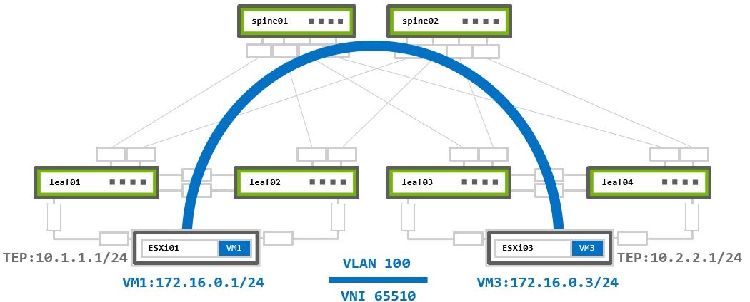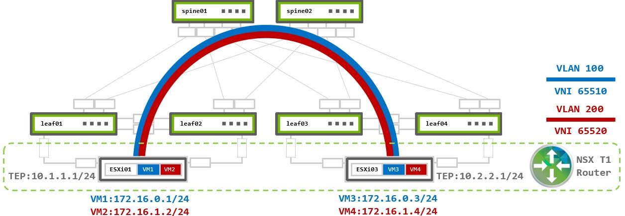 This use case covers a basic VMware environment 100% virtualization based on a pure IP fabric underlay. All communications are between virtual machines (VMs) located on ESXi hypervisors.