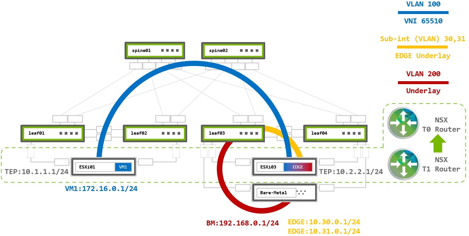 - Border Gateway Protocol - BGP to provide underlay IP fabric connectivity between all physical and logical elements. This is the preferred best practice.