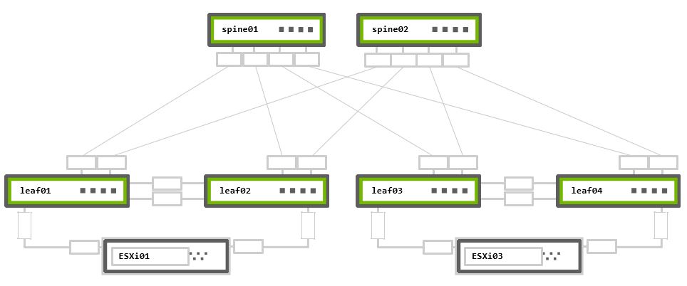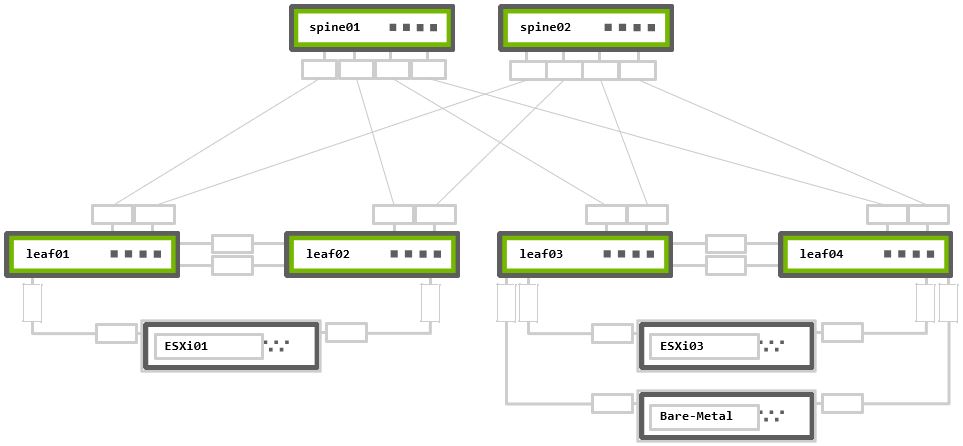 Rack 2 – Two NVIDIA Switches in MLAG + One ESXi hypervisor connected in active-active bonding