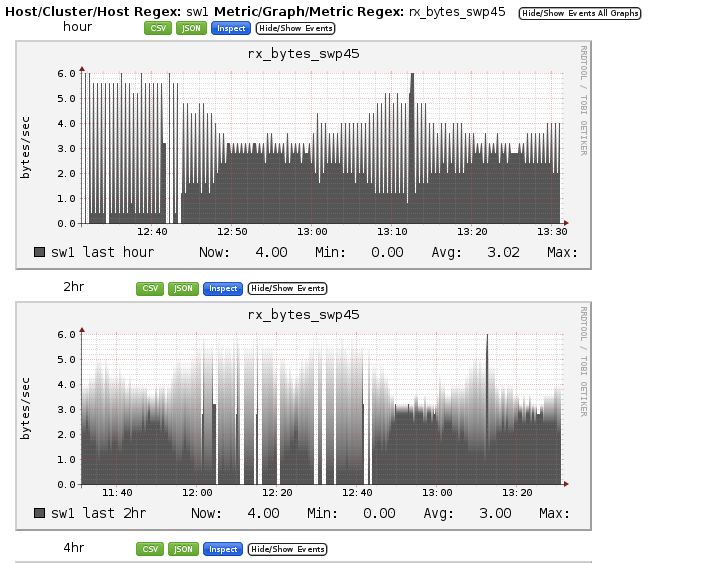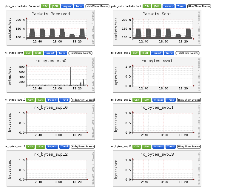 You can also see that while swp10-13 do not have any traffic running across them, unlike swp45, which has traffic running. Ganglia also allows you to zoom in to get more statistics with their Web interface.