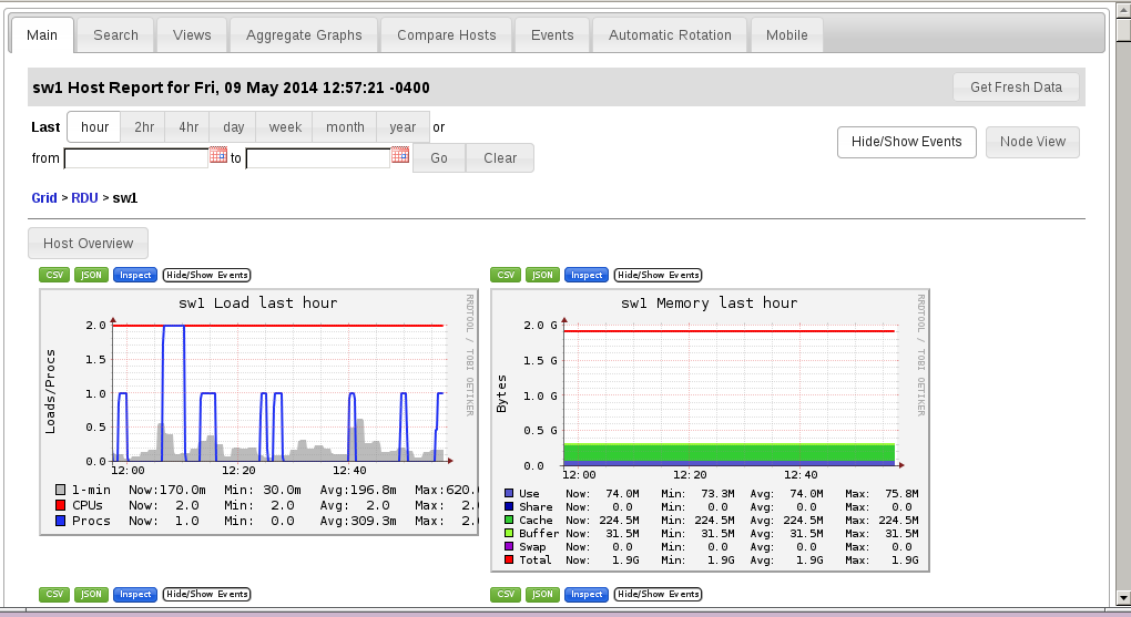7. After a minute, the PHP front end on the host (server) starts getting enough data to see in the graphs. They look like the following: