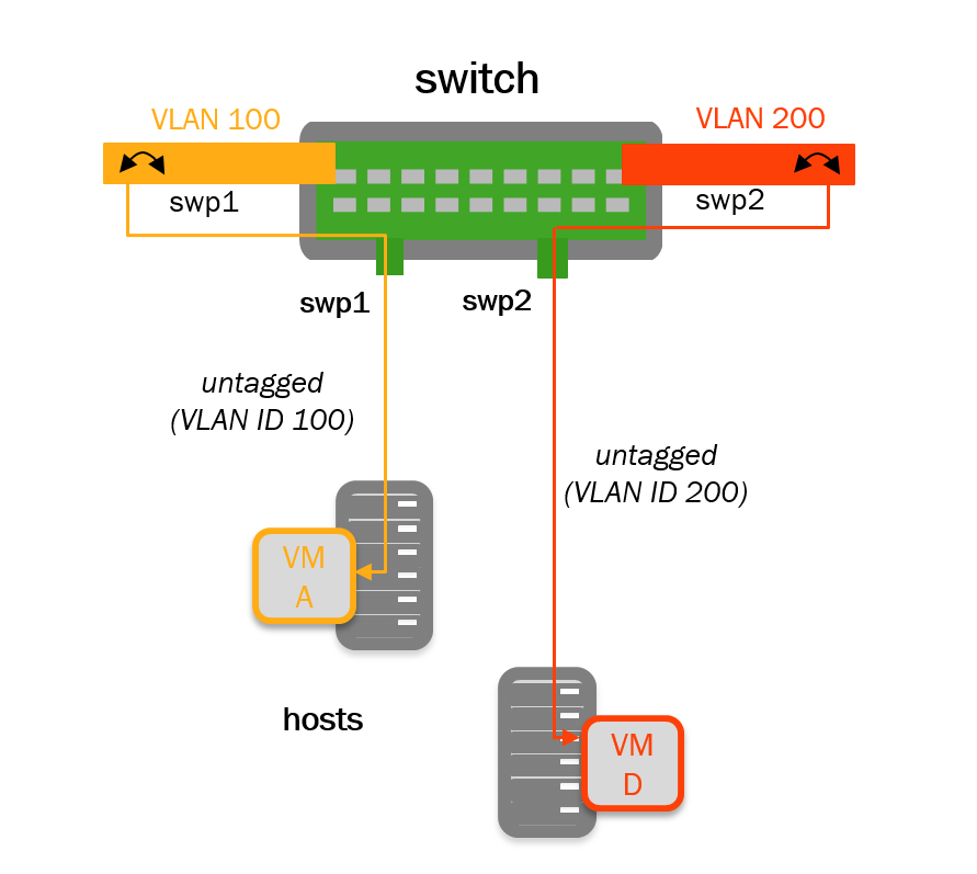 Cisco does not allow the user to configure this. In Cisco switches, all ports are members of a single bridge or switch. Cisco’s declaration of VLANs with the vlan 100,200 statement allows all ports in their undeclared software bridge to use those VLANs, and is nearly identical to the bridge-vids statement that defines the list of VLANs supported on all the member ports of the bridge within Cumulus Linux.